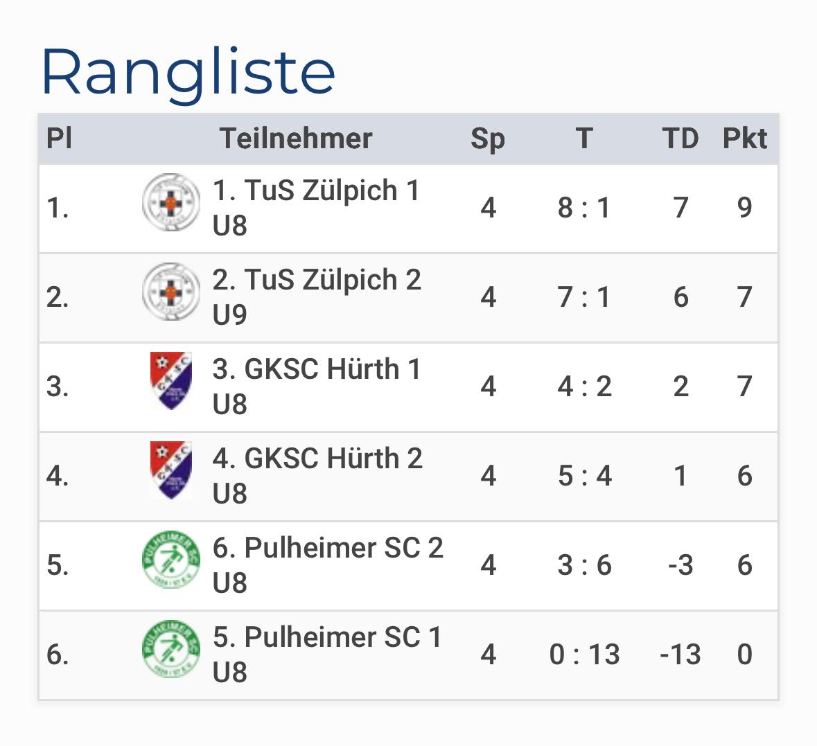 Im ersten Spiel ging es gegen Team 1 des GKSC Hürth. 12 Minuten dominiert, keine Chancen zugelassen, aber auch selber nicht getroffen. So sind wir mit einem torlosen Unentschieden in den Leistungsvergleich gestartet. Im zweiten Spiel wartete das zweite Team des Pulheimer SC auf uns. Ein Spiel auf Augenhöhe. Relativ schnell konnte Max sauber unten links zum 1-0 abstauben und Bilal auf 2-0 erhöhen. Das restliche Spielzeit wurde souverän runtergespielt und das 2-0 gehalten.