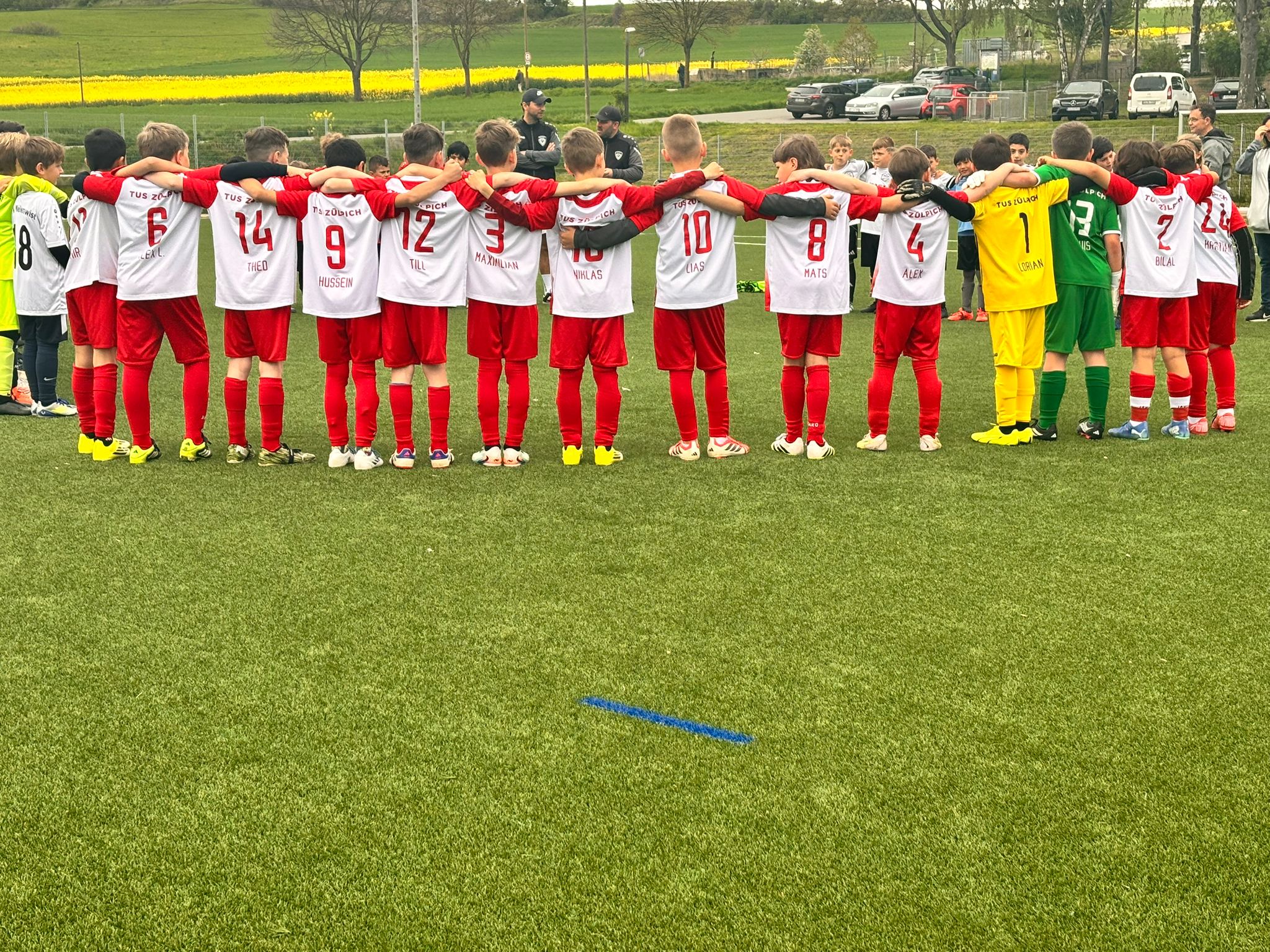 In Schwerfen bei der SG Eifelland trafen wir auf die Teams des Gastgebers sowie aus Weilerswist und Erft 01. Bis auf eine Absage konnten wir nahezu aus dem Vollen schöpfen. Coach Jan schickte mit Team 1 Louis, Lias, Max, Niklas, Lexi, Alex und Samir ins Rennen, während Coach Chris mit Team 2 Lorian, Till, Theo, Mats, Hussein, Bilal und Kristian betreute.